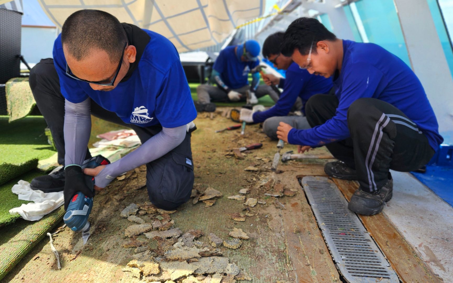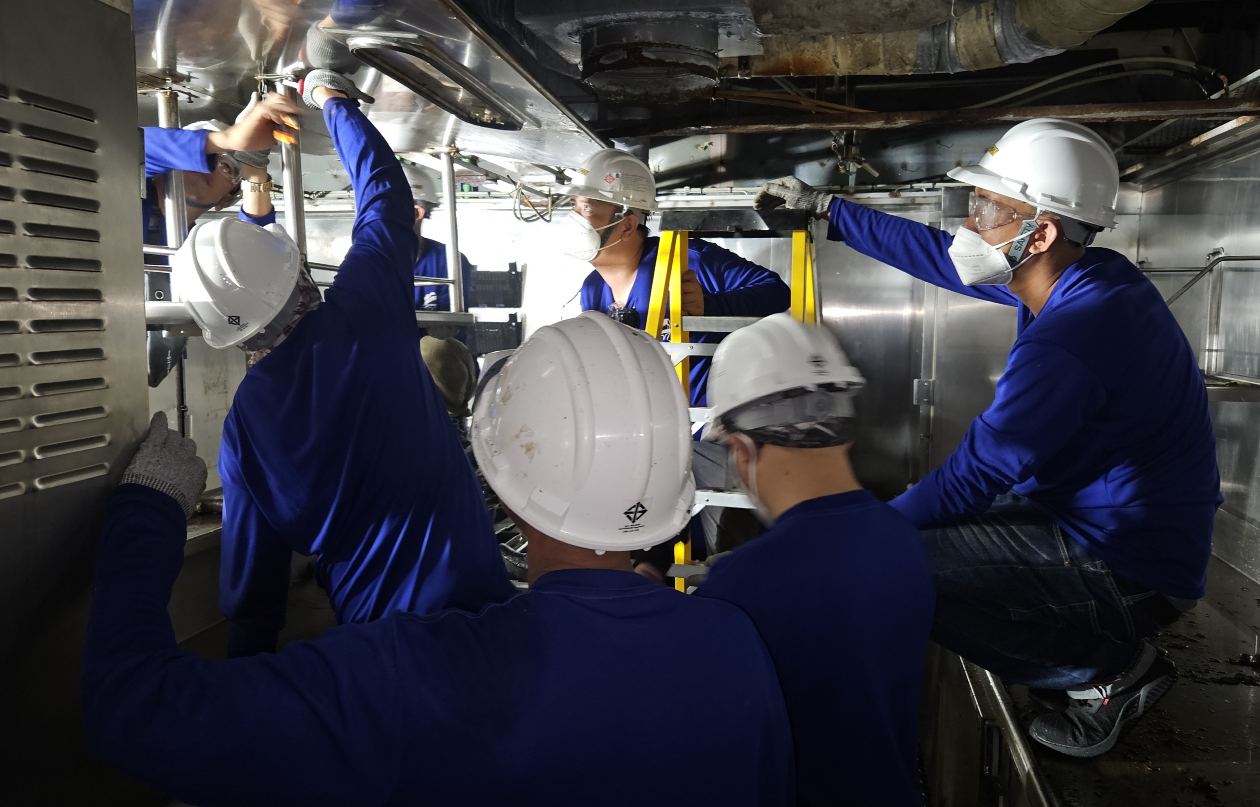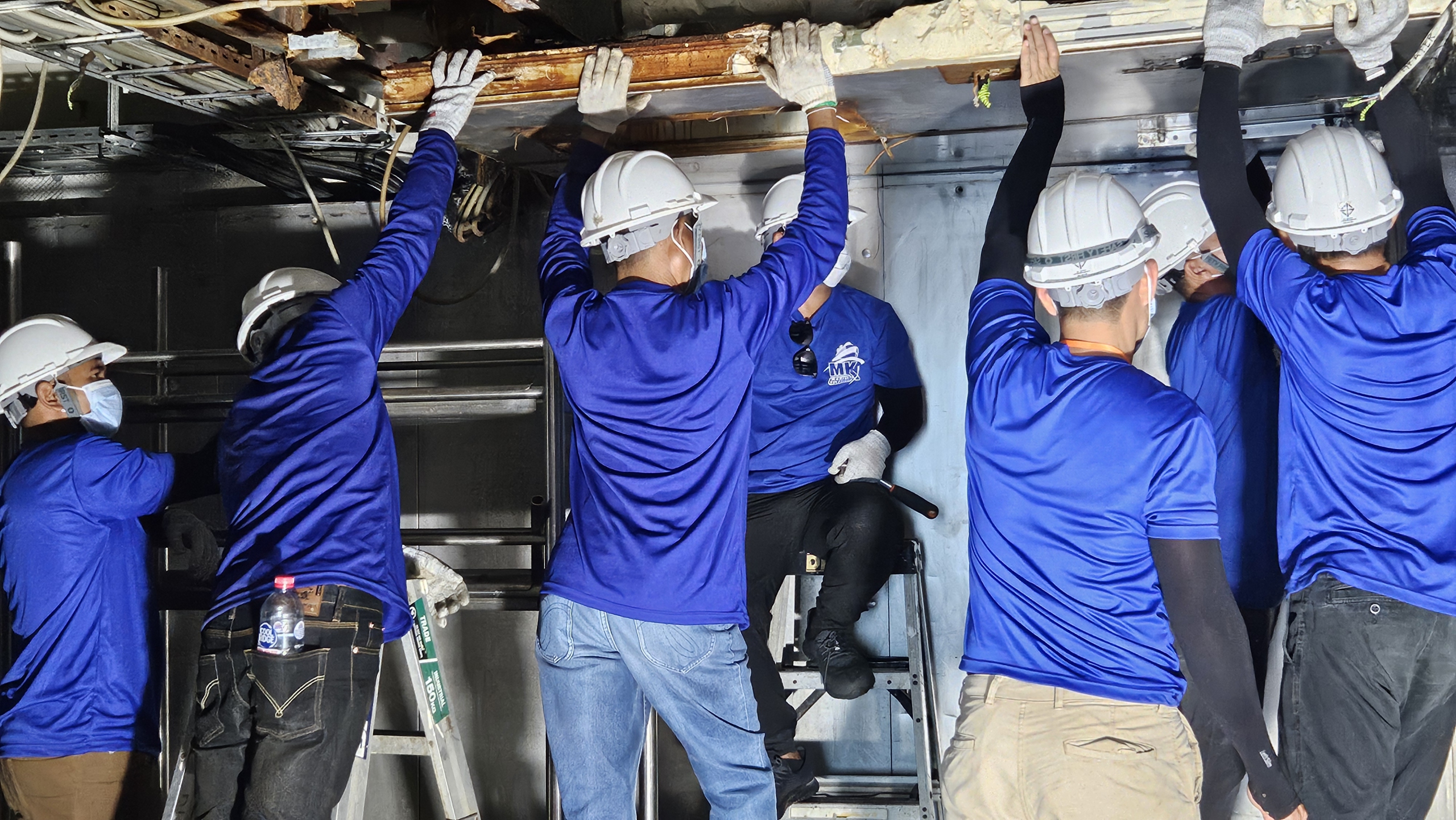 MK Marine and our riding squad team of 60 men were contracted in for dry dock in Singapore followed by sailing operations in China/Japan over an 8 month period. With the Vessel requiring significant Works our dedicated team of skilled welders and fitters were onboard for 8 months working in close collaboration with the Deck and Engine Departments to undertake significant Works to restore the Vessel to peak operating condition;